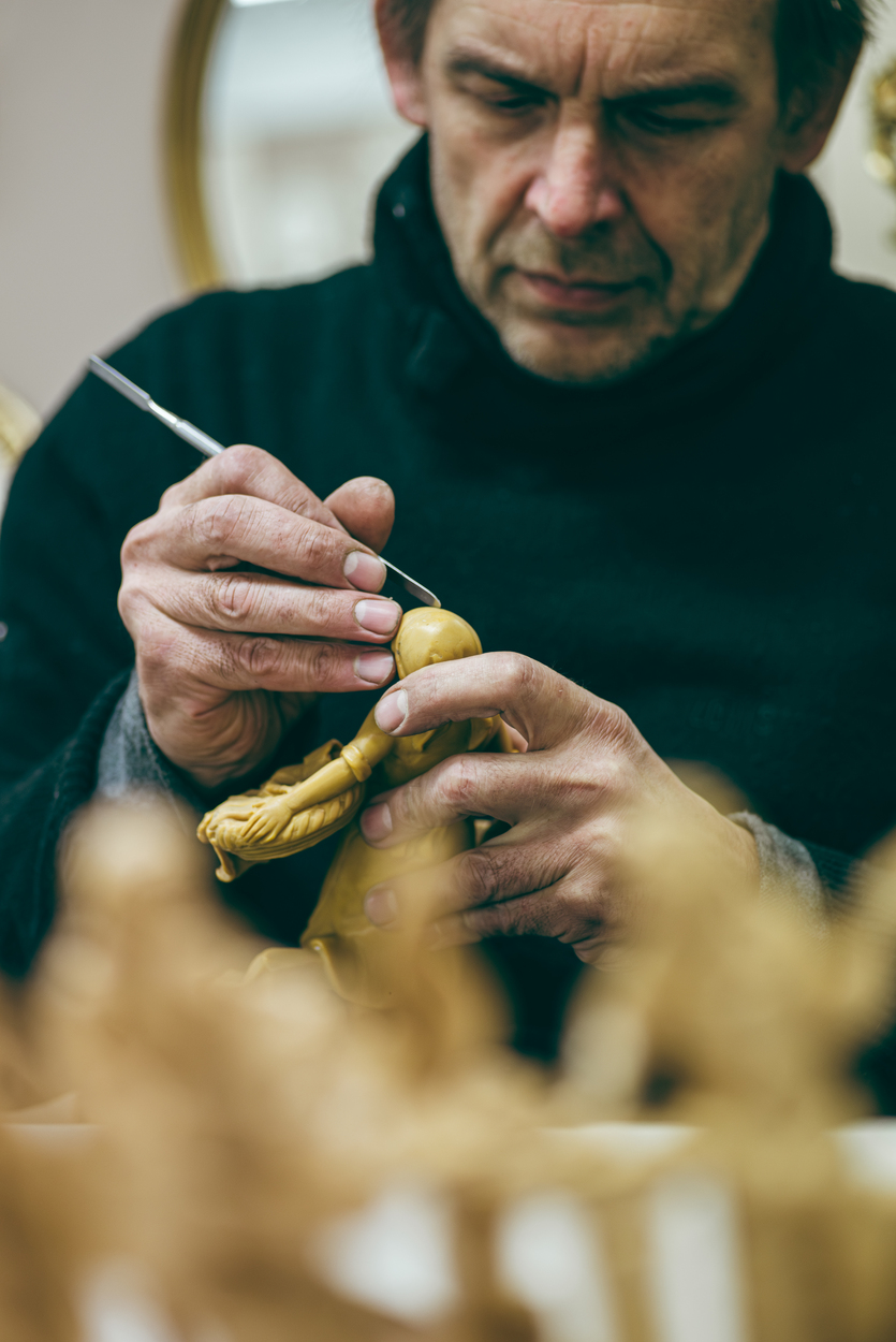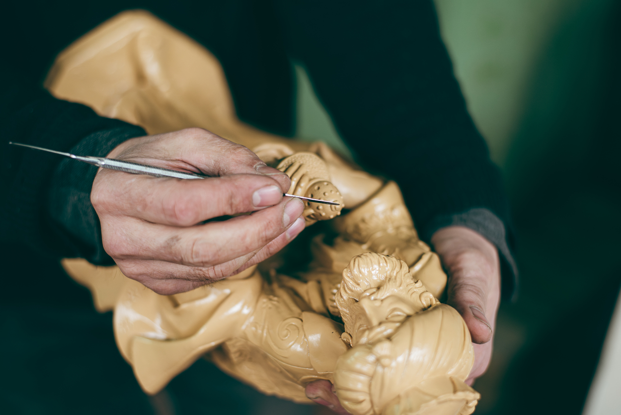 Presso EUROMARCHI, la creazione di ogni pezzo è un processo artigianale che incarna l’arte e la tradizione italiane. Il nostro ciclo produttivo inizia con la realizzazione di un modello unico, opera di esperti scultori. Questi artisti danno vita a figurine o modelli di varie dimensioni, modellate a mano con cura e poi .